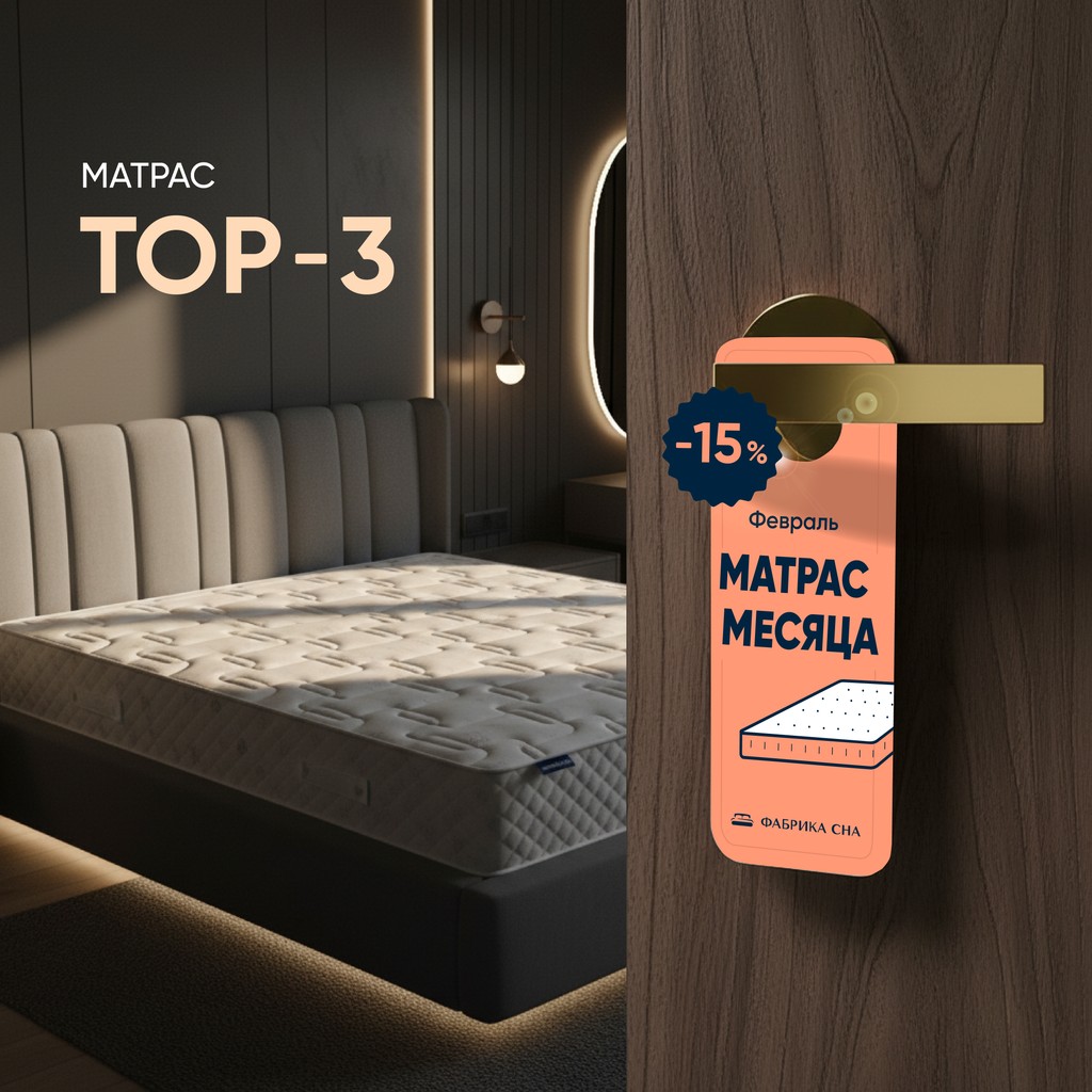 МАТРАС МЕСЯЦА в феврале - Топ 3. Одна из лучших пружинных моделей в рейтингах матрасов с кокосовой койрой. Весь месяц купить матрас Топ-3 вы сможете со скидкой -15%.